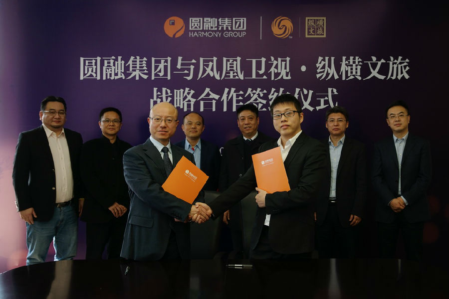纵横文旅副总裁彭永昌(右)与圆融集团商业发展总监吴志唐(左)签署战略合作协议