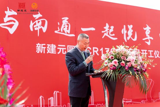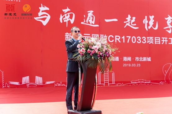新建元圆融发展副总裁沈玉林先生在典礼上致辞,表示新建元圆融发展深耕南通十年,连落三子,从南通圆融广场、圆融·堤调,到圆融CR17033地块,产品不断升级,并受到市场的追捧。圆融CR17033地块的开工,无论在区域、产品上都是一个新的起点,相信圆融以领先的品质与服务,将会继续赢得通城人民的一致认可。未来,圆融也将继续深耕通城,以更多的项目,与通城共分享。沈总的发言,得到了在场嘉宾的阵阵掌声,圆融发展清晰的战略布局版图,已经呈现在大家面前。圆融南通公司总经理卞文山先生也表示,以工匠精神,更懂通城的情怀,打造通城人民满意的高品质社区。