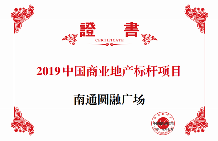 2019年7月16日,由中指研究院、中国房地产指数系统主办,中指控股承办的“2019中国商业地产指数发布会暨第二届中国商业地产发展高峰论坛”在北京举行。新建元圆融发展荣膺“2019中国商业地产标杆企业”,圆融发展开发建设的“南通圆融广场”成功获评“2019中国商业地产标杆项目”。圆融发展南通公司总经理卞文山参会并领奖。