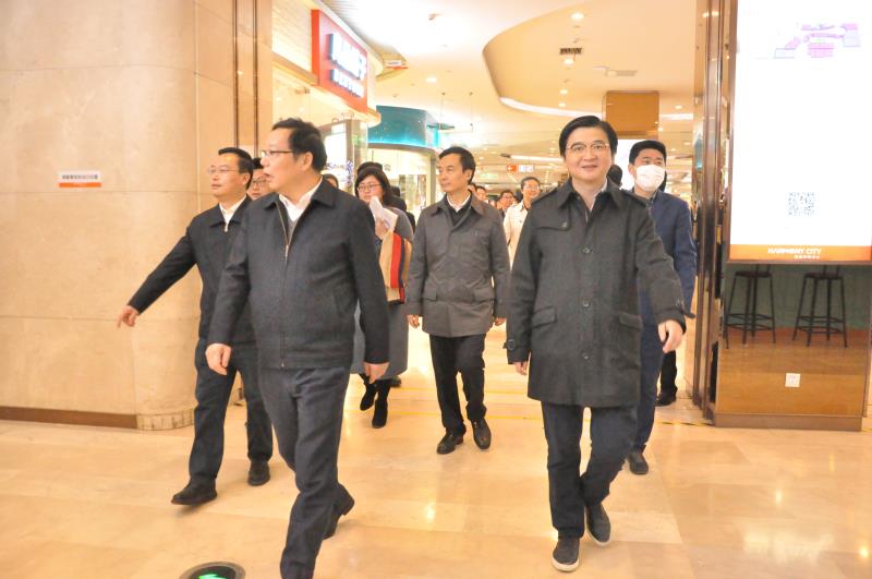 走访期间,徐惠民一行边走边看,充分了解防控物资筹备、疫情防控、复工复产等重点工作开展等情况,并对商场日常防疫工作给予了肯定。他强调,在科学精准巩固防控成效的同时,扎实有效提振消费信心、释放消费潜力、激发消费活力,鼓励市民走出家门,全面恢复正常生产生活秩序。