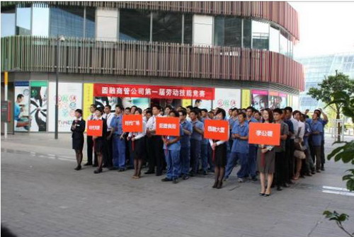 “拼搏进取,赛出佳绩。”为更好的提升专业技能、促进员工交流沟通,体现“团结、高效、务实、创新”的圆融文化,圆融商管公司于2010年6月28日-30日举办了第一届劳动技能竞赛,来自圆融时代广场、李公堤、圆融大厦、时代天阶、阳澄食街五个项目的71位一线员工参加了比赛。公司管理层、各部门、项目负责人担任了本届技能竞赛的评委。