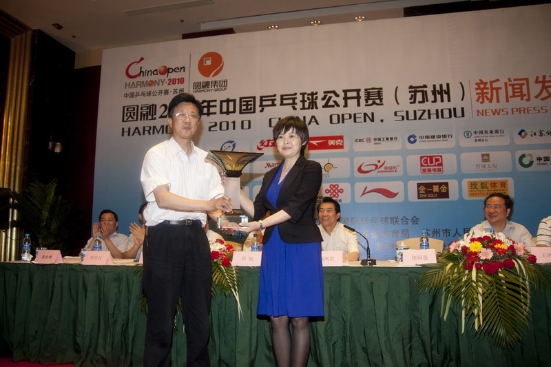 2010年7月1日,圆融2010年中国乒乓球公开赛(苏州)举行新闻发布会,国家体育总局乒乓球羽毛球运动管理中心主任刘凤岩,江苏省体育局副局长周旭,苏州市委常委、宣传部长徐国强,苏州市副市长王鸿声等出席发布会。