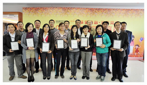 在圆融集团,有这样一批人作为开拓者,为集团的发展奉献了五年的心血。他们中既有管理层领导,也有默默无闻、冲锋陷阵的普通员工,当主持人邀请大家呼唤他们登场时,这些熟悉的名字立刻迸发了出来。这些圆融集团的创业者们在接受大家的致敬和祝贺的同时,从总裁刘樱手中接过了“五周年荣誉员工”的证书,他们脸上流露出无比的自豪与欣慰。