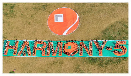 随着家庭日的气氛进入高潮,大家来到了圆融大厦外的草坪,共同摆出HARMONY-5的字母造型,欢呼着“生日快乐”,留下了温馨而又独特的“全家福”。