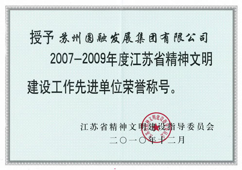 日前,中共江苏省委、江苏省人民政府联合发文,命名表彰2007—2009年度江苏省文明村镇、文明单位(苏委〔2010〕452号),圆融集团被命名表彰为“2007-2009年度江苏省精神文明建设工作先进单位”荣誉称号。