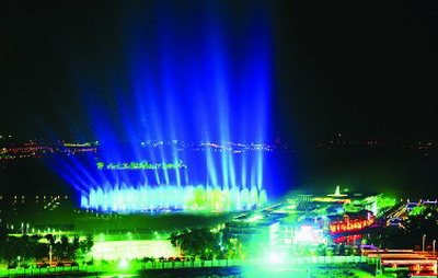 金鸡湖西城市广场的音乐喷泉是目前华东地区规模最大的水景系统。整个水景以“水韵飞歌”为主题,东西长130米,南北长208米,主题喷泉高度可达到108米。喷泉结合激光、电影、音乐、火焰等元素,生动的展现了园区的人文、科技、生态三大主题概念。