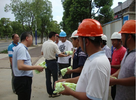 7月22日下午,圆融集团管理层领导沈玉林、唐登斌带领集团相关部门负责人、工作人员赴集团各在建项目慰问一线施工人员,为他们送去关怀与清凉。
