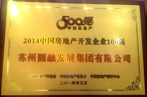 3月19日,中房协组织的“2014中国房地产500强测评成果发布会暨500强峰会”在北京国贸举行,圆融集团以商业地产领域的卓越成就荣膺2014年中国房地产开发企业500强86位;2014中国房地产开发企业商业地产运营10强第5位;前10强分别为:华润、世茂、金融街、中粮、圆融、银泰、证大、远洋、SOHO、方兴。
