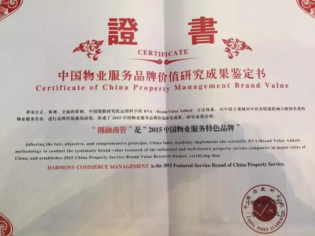 在品牌建设方面,圆融集团以“前瞻性、创新性”的企业理念和“第一性、唯一性”的精品战略,强化商业地产投资和运营的核心竞争力建设,品牌影响力持续提升。圆融集团于2011年、2012年、2013年、2014年、2015年连续五年被评为“中国商业地产公司品牌价值TOP10”企业,这标志着圆融集团企业及项目的品牌地位与影响力不仅深受消费者认可,也获得了社会与行业的高度评价。